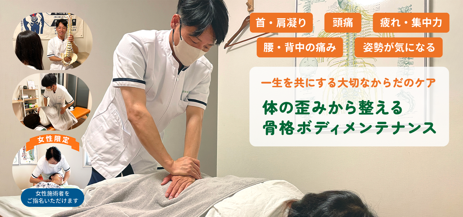 - 無理なく整える手技(ボキボキもソフトも対応可能です)ボキボキが苦手な方は、仰ってください